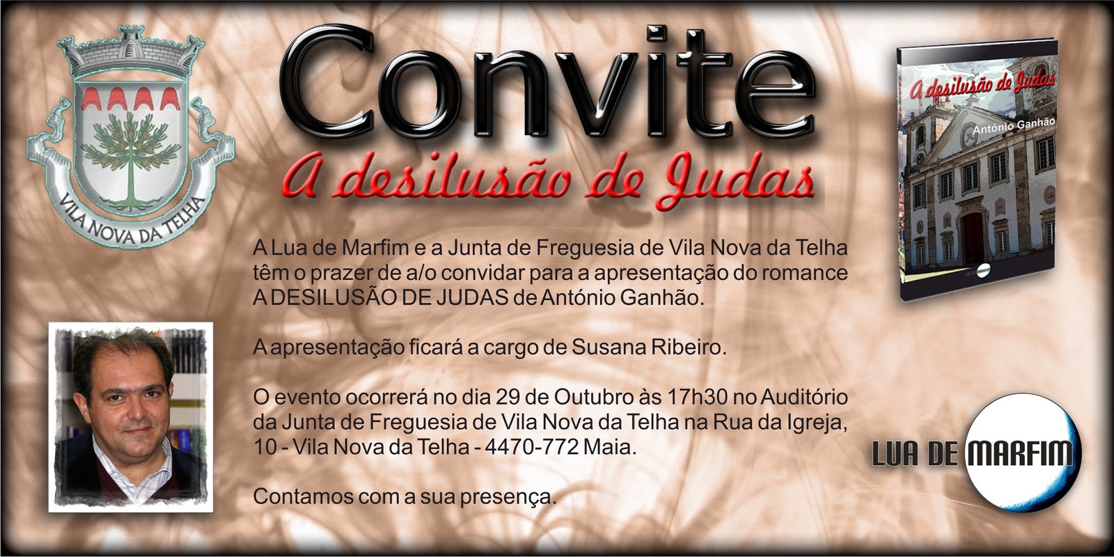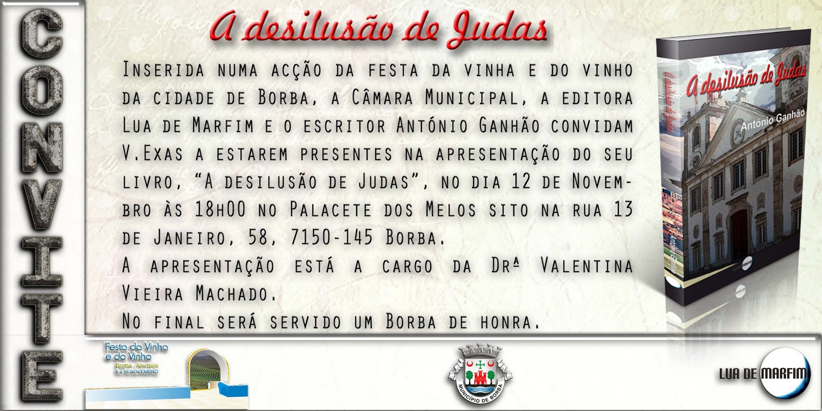 de convidar V.Exas a estarem presentes na apresentação do seu romance "A desilusão de Judas", no dia 15 de Dezembro, às 18 horas, na Biblioteca